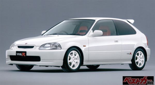 「EK9」という型式で呼ばれ、現在でも人気の高い初代シビックタイプRは1997年8月に登場。スポーティハッチバックとして高く評価をされているシビックをベースに走りの楽しさと運動性能を徹底追求した3 ドア・FFスポーツモデルだ。