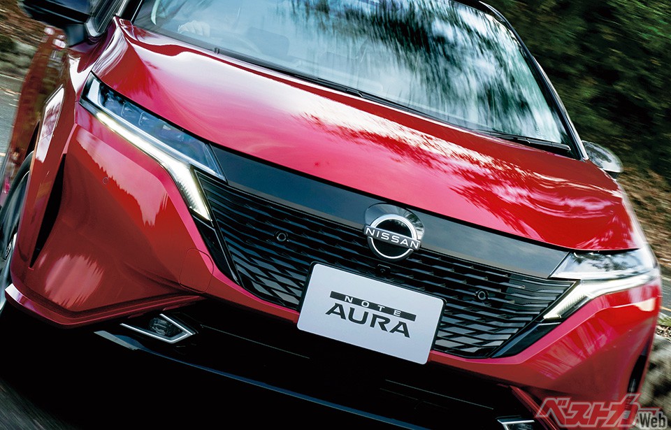 ノートオーラはノートをベースにボディサイズを3ナンバー枠まで広げ、ハンドリング、モーター性能などを引き上げた人気車種だ。