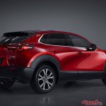CX-30は全長がカローラクロスよりも約100mm短いが、両車の位置付けは似ている。CX-30はボディ側面のパネルにボリューム感を持たせ、映り込みが美しい。