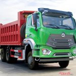 中国の五大トラックメーカーの一つ、中国重汽の豪瀚N6GのGVW25tダンプ完成車。鉱山の採石運搬用で深あおりの角底ダンプボディを架装している。