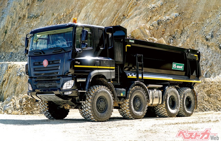 チェコの総輪駆動・総輪独立懸架のトラックメーカー・タトラのT148フェニックスをベースに、スロバキアのVSモント製ハーフパイプダンプボディを架装。