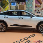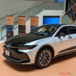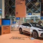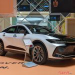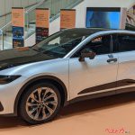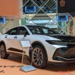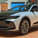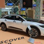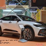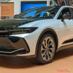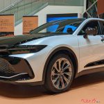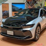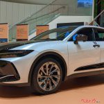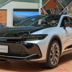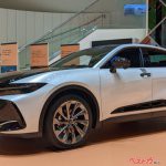 新型クラウンのクロスオーバーは今秋発売。JR名古屋駅前ミッドランドスクエア内トヨタショールームには9月まで実車展示され、その後に全国の展示会場を回るとのこと。
