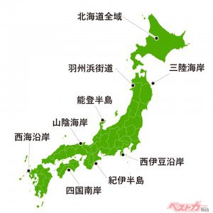能登半島、紀伊半島、山陰海岸、四国南岸、西海沿岸。どこも感動的な「ザ・ロング・アンド・ワインディング・ロード」が続く。クルマ好きなら、ここを走らずに死ねないぜ!