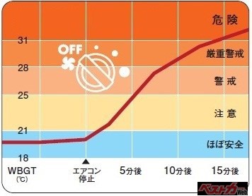 夏は車内に子どもを残すことはぜったいにやめましょう。JAFが実施した車内温度の検証テストによると、気温35℃の炎天下に駐車した車内の暑さ指数は、窓を閉め切った状態でエンジン停止後、わずか15分で人体にとって危険なレベルに達しました。