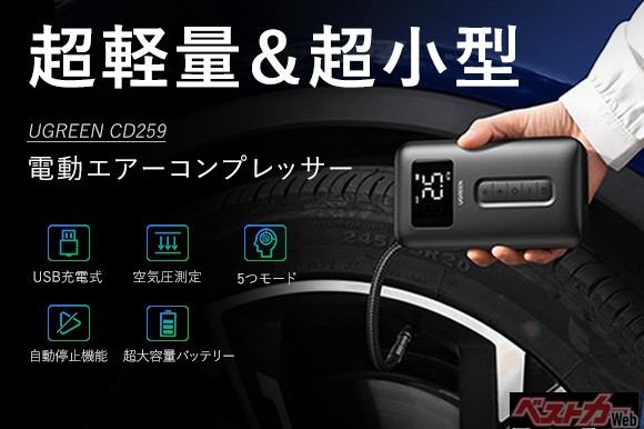 UGREEN「CD259」は繋げるだけでカンタンに空気の充填ができ、コンパクトで携帯可能な空気入れです。車のタイヤはもちろん、ボール、浮き輪、自転車、オートバイまでこれ1台で!さらに、自動空気圧点検と自動停止機能も備えており、空気の入れすぎや不足の心配はありません!