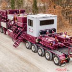 この物々しい5軸セミトレーラは、アメリカで油井掘削時に岩盤崩落を防ぐ薬液をブレンドするための装置を積載したもの。重さは不明だが、10×4セミトラクタからかなりの大重量とわかる。