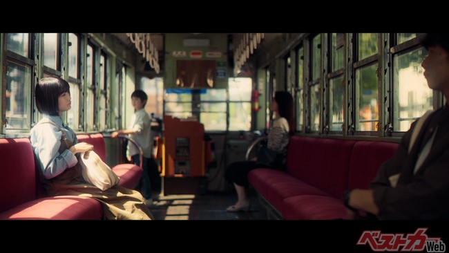 ラッピング電車は、自分が今まで乗っていた路面電車だったのでまさか自分をこんな風に素敵にデザインしていただけると思っていなくて、やっぱり実際見ると不思議な気持ちでもありますし嬉しい気持ちでもあります。久しぶりに乗ってみて落ち着く感じでCMも撮れて、いつもよりもやわらかい表情だったんじゃないかなと思います。