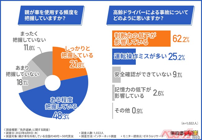 そこで今回、廃車・事故車買取専門『事故車買取王 八王子店』(https://www.jikosyakaitoriou.com/index.php)を運営する株式会社Santa Corporate(サンタコーポレート)と「埼玉店」「町田相模原店」「横浜店」「山梨店」が共同で、親が車を所有している全国の40代~50代男女を対象に、「免許返納」に関する調査を実施しました。