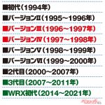 ・スバル インプレッサWRX STI(1994年初登場・9モデル ※WRX1代含む)
