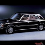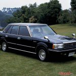 1983年8月にデビューした7代目の中盤あたりから日本経済は“バブル景気”の真っただ中に入っていく。7代目ではリアピラーに“クリスタルピラー”という、光沢のある樹脂カバーを配すなど、ゴージャス路線を突き進んでいった。“いつかはクラウン”というキャッチコピーが使われたのもこの7代目である。