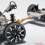 これに、61kW(82.9ps)/292Nm出力のフロントモーターを採用、アクアから採用が始まったバイポーラ型ニッケル水素電池を組み合わせている。後輪側のe-Axleは59kW(80.2ps)/169Nm出力だ。