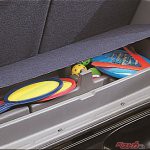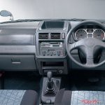 コックピットには、電子方位計、高度計、外気温計、時計を組み合わせたマルチメーターが鎮座し、ここもしっかりパジェロの雰囲気をとり入れていた。内装のクリーンなイメージや乗用車感覚が強いところもジムニーとは異なるテイストで、インテリアの質感を大切にしたい人にとって魅力的なモデルだった。