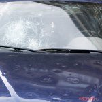 そのなかには、納車されたばかりであろう新型車の姿も見えた。オーナーに話を伺うことができたのだが、納車からわずか1カ月のことだったという。ボンネットからルーフにかけて、凹みが数十か所に及んでおり、ガラスなどにも被害が及んでいた。修理費用は150万円を超えるという。