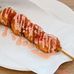 そして佐野のソウルフードにも変わりダネが用意されています。それが「いもフライ いちごソース」(400円)。甘酸っぱいイチゴのエキスをマヨネーズソースにプラス。かぶりついたときに、爽やかなイチゴの香りが楽しめます。