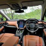 インテリアはエクステリアと真逆で全面刷新。縦型の大型ディスプレイ内蔵のインパネセンターやフル液晶のメーターなどは2代目レヴォーグと共通レイアウトだが、左右/センターの空調グリルやシフト周り(サイドブレーキスイッチの位置)はアウトバック専用デザインだ。