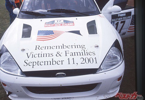 アメリカ同時多発テロ事件の10日後 WRCを走るフォードフォーカスに書かれた言葉